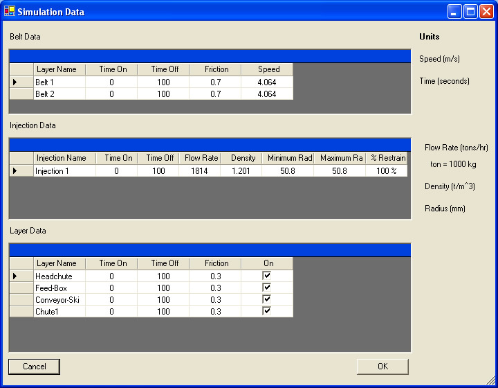 The belt and injection point details are pulled directly from your AutoCAD drawings. Input parameters are in units you commonly use. They will either be in metric or US units depending on the units of your original drawing.